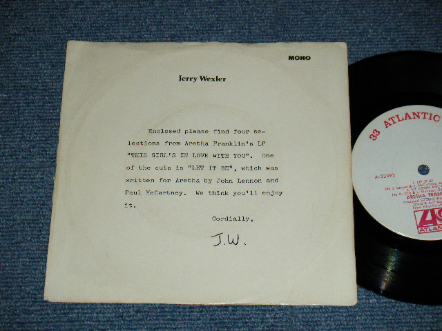ARETHA FRANKLIN - This Girl's In Love With You (Ex++/Ex++) /1970 US AMERICA ORIGINAL "PROMO ONLY" Used 7"33 ⅓ RPM EPWith PICTURE SLEEVE ,[ATLANTIC 7-8248 (A-33093/A-33094)]