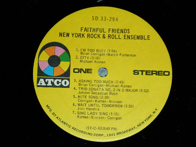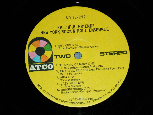 The NEW YORK ROCK & ROLL ENSEMBLE - FAITHFUL FRIENDS (Ex++/MINT- CRACK) 1969 US AMERICA ORIGINAL 1st Press "YELLOW with 1841 BROADWAY Label" Used LP [ATCO SD 33-294]