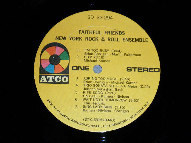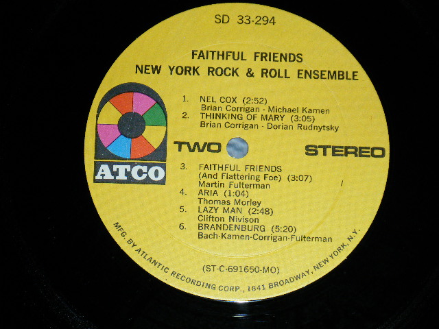 The NEW YORK ROCK & ROLL ENSEMBLE - FAITHFUL FRIENDS (With INSERTS) Ex++++/Ex+++) 1969 US AMERICA ORIGINAL 1st Press "YELLOW with 1841 BROADWAY Label" Used LP [ATCO SD 33-294]