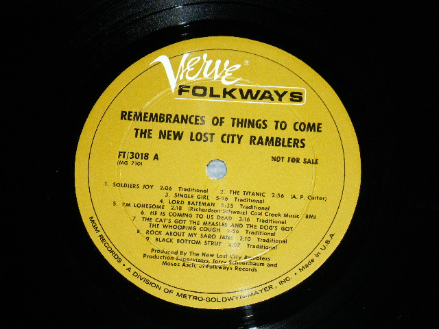 The New Lost City Ramblers - Remembrance Of Things To Come (Ex++/Ex+++ BB, WOBC) / 1967 US AMERICA ORIGINAL 1st Press Label MONO Used LP[VERVE / FOLKWAYS FT-3018 MONO]