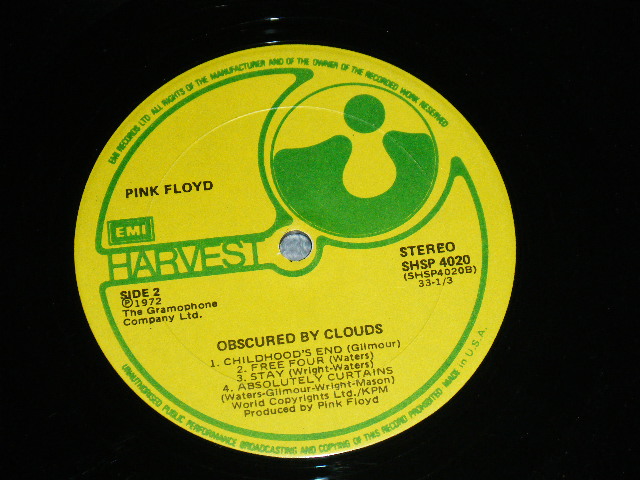 PINK FLOYD - OBSCURED BY CLOUDS (Matrix #)(Ex++/Ex++) / 1972 UK ENGLAND ORIGINAL JACKET + US ORIGINAL WAX/VINYL "FIRST ISSUED" Used LP [HARVEST SHSP-4020]