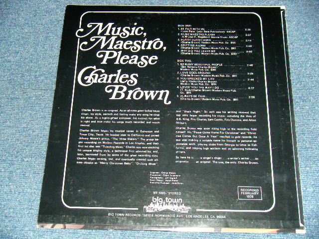Charles Brown (PIANO BLUES) - Music, Maestro, Please (Ex++/MINT-) 1978 US AMERICA ORIGINAL Used LP [BIG TOWN BT-1005]