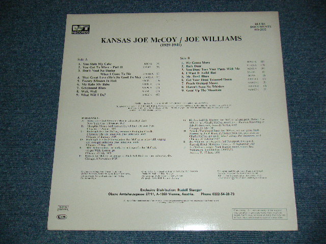 Kansas Joe McCoy / Joe Williams - (1929-1941) (MINT-/MINT) / 1988 AUSTRALIA ORIGINAL Used LP[RST Records BD-2032]