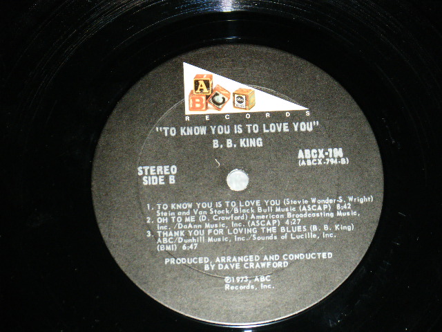 B.B.KING B.B. KING - TO KNOW YOU IS TO LOVE YOU (Ex+/Ex+) / 1973 US AMERICA ORIGINAL 1st Press "BLACK Label" Used LP[ABC ABCX-794]