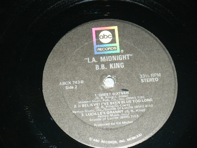B.B.KING B.B. KING - L.A. MIDNIGHT (Ex+++/Ex+ Looks:Ex) / 1972 US AMERICA ORIGINAL 1st Press "BLACK Label" Used LP[ABC ABCX-743]