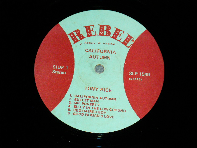 TONY RICE - CLIFORNIA AUTUMN (Ex/Ex+++ EDSP) / 1975 US AMERICA ORIGINAL Used LP [REBEL SLP-1549]