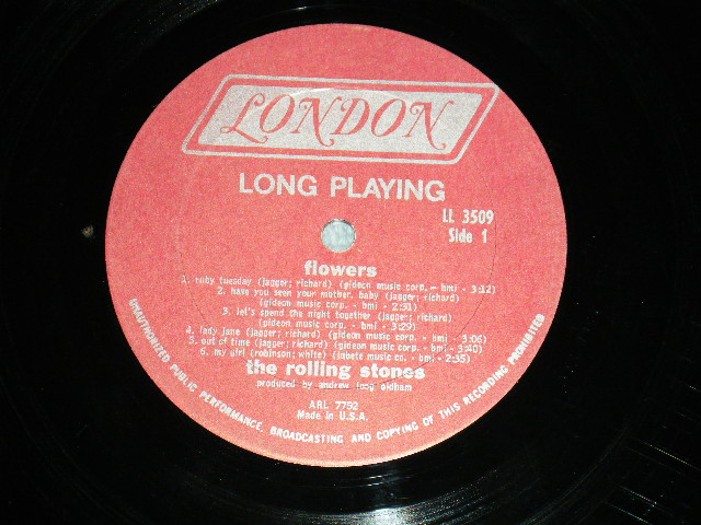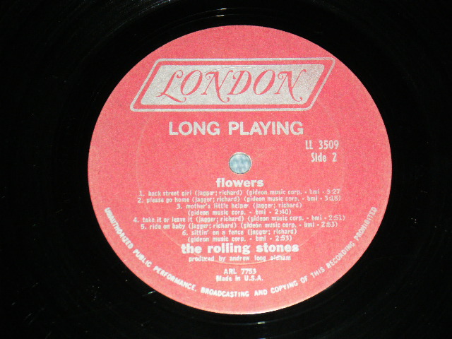 ROLLING STONES - FLOWERS (Matrix#A)ARL 7752-1U O A11 B)ARL 7753-1D 1C 111) "JACKSONVILLE Press" (Ex++/Ex+++Looks:Ex+) / 1967 US AMERICA ORIGINAL1st Press "MAROON with Boxed 'LONDON' Label" MONO Used LP[LONDON LL-3509 MONO]