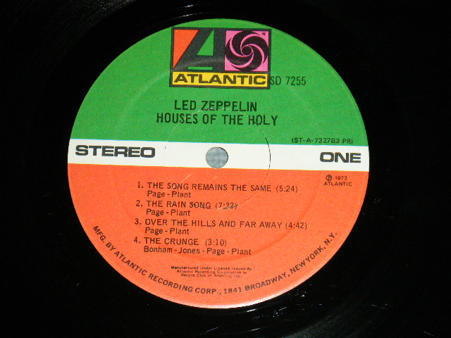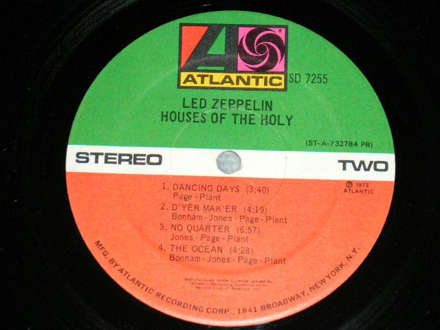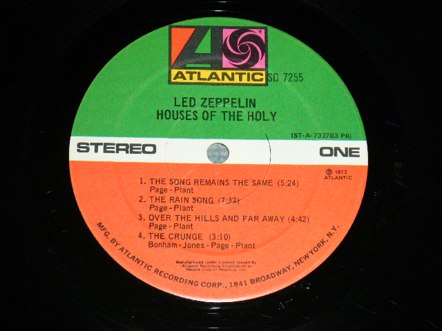 LED ZEPPELIN - HOUSES OF THE HOLY (With CUSTOM INNER) (Matrix #A)ST-A-732783-B AT Sterling RL PR B)ST-A-732784-C AT Sterling RL PR) "PR/PRESSWELL Press in NJ"(Ex++/Ex+++, Ex+++ Looks:Ex++) / 1973 US AMERICA ORIGGINAL1st Press "1841 BROADWAY Label" "RECORD CLUB OF AMERICA Release" Used LP[ATLANTIC SD-7255 // SD 7255]