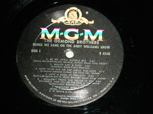 THE OSMOND BOTHERS - Songs We Sang On The Andy Williams Show (Ex++/Ex+++) / 1963 US AMERICA ORIGINAL "MONO" Used LP [MGM E-4146 MONO]