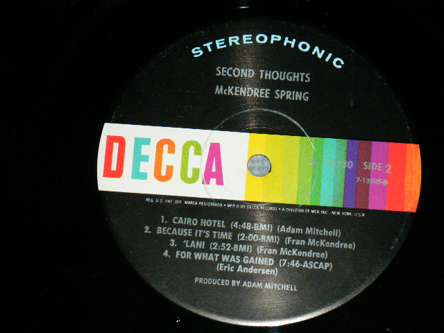 McKENDREE SPRING - Second Thoughts (VG/Ex+++ EDSP, STOFC) / 1970 US AMERICA ORIGINAL Used LP[DECCA DL-75230]