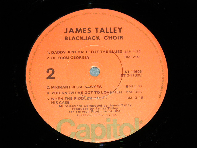 JAMES TALLEY - BLACK JACK CHOIR (A-1 with B.B. KING) (With CUSTOM INNER) (Ex+++/Ex++) / 1977 US AMERICA ORIGINAL "ORNGE Label" Used LP[CAPITOL ST-11605]