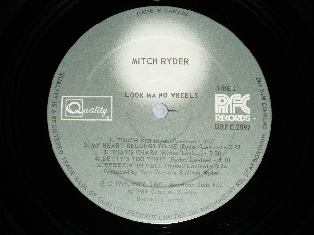 MITCH RYDER - LOOK MA, NO WHEELS (MINT-/MINT- BB) / 1981 CANADA ORIGINAL Used LP [Quality QRFC-2097]