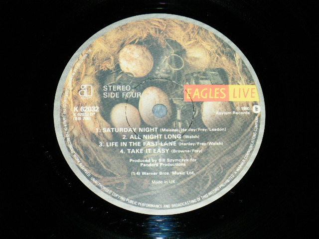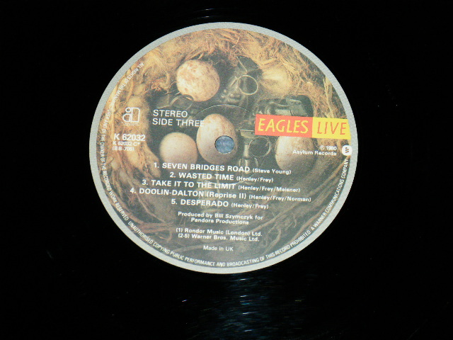 EAGLES - EAGLES LIVE (With CUSTOM INNER) (Matrix #A)A2 B)B2 C)C2 D)D2) (Ex+/MINT-) / 1980 UK ENGLAND ORIGINAL Used 2-LP's [ASYLUM K62032 / K-62032]