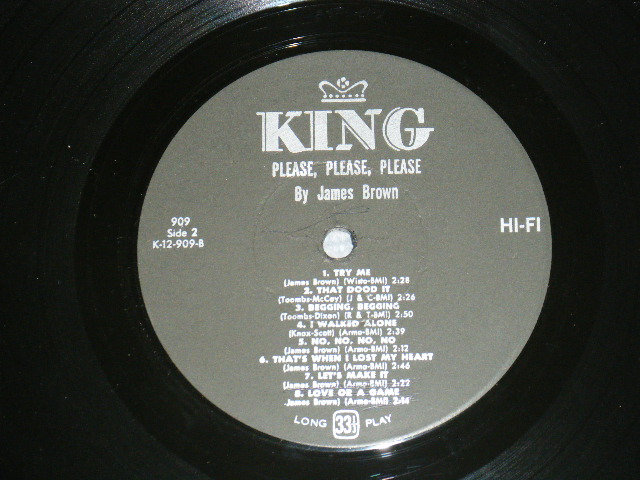 JAMES BROWN - PLEASE PLEASE PLEASE (MINT-/Ex+++) /1964 Version US AMERICA REISSUE of 610,"BLACK With Crown" KING LABEL MONO Used LP [KING 909 Reissue of 610 MONO]