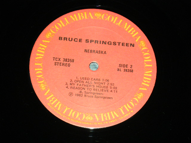 BRUCE SPRINGSTEEN - NEBRASKA (Ex+++/MINT-) / 1982 CANADA ORIGINAL "With CUSTOM INNER SLEEVE" Used LP [COLUMBIA TCX38358 / TC-38358]