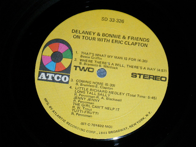 DELANEY & BONNIE & FRIENDS - ON TOUR WITH ERIC CLAPTON (Matrix #A)ST-C-701831-BB MO MR LW AT ▵14630 aB W B)ST-C-701832-BB MO T MR LW AT ▵14630-x aB W)"MO/MR/MONARCH Press in CA" (Ex++/mint-) / 1970 US AMERICA ORIGINAL 1st Press"YELLOW with 1841 BROADWAY at Bottom Label" Used LP [ATCO SD33-326 / SD 33-326]