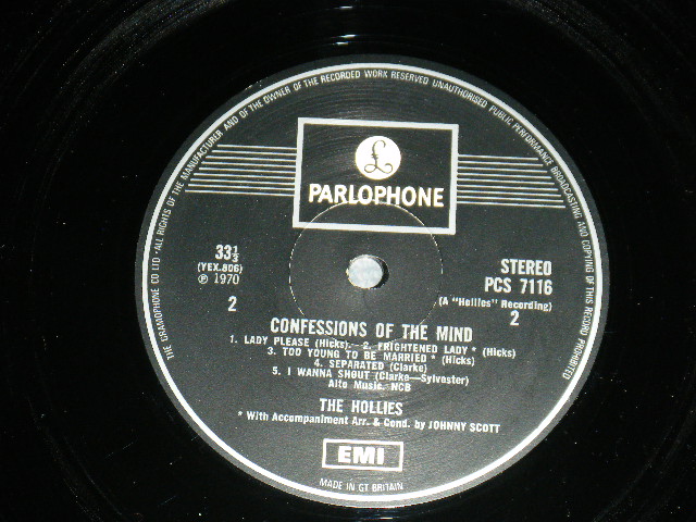 THE HOLLIES - CONFESSIONS OF THE MIND (Matrix #A)YEX-805-1 1 O B)YEX-806-2 1 CC) (MINT-/MINT-) / 1970 UK ENGLAND ORIGINAL "TEXTUREDCover" "1 x EMI Label" Without Colour Inserts Used LP[PARLOPHONE PCS-7116]