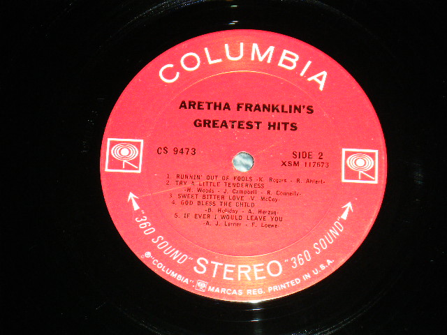 ARETHA FRANKLIN - GREATEST HITS (MINT-/MINT-) / 1967 US AMERICA ORIGINAL STEREO "360 SOUND LABEL" Used LP [COLUMBIA CS-9473 STEREO]