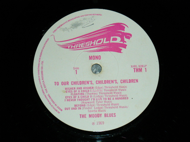 The MOODY BLUES - TO OUR CHILDREN'S CHILDREN’S CHILDERN (With INSERTS) (Matrix#A)XRAL-9281-3A B)XRAL-9282-2A ) (Ex++/Ex++) / 1969 UK ENGLAND ORIGINAL "MONO" Used LP[THRESHOLD THM-1 MONO]