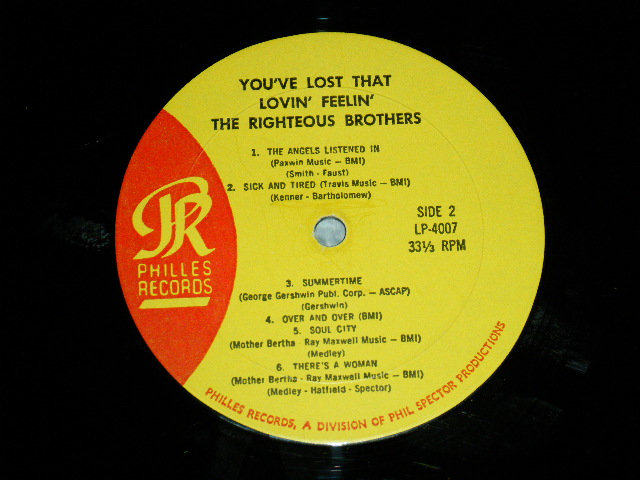 The RIGHTEOUS BROTHERS - YOU'VE LOST THAT LOVIN' FEELIN' (Ex/Ex++ Looks:Ex+++) / 1964 US AMERICA ORIGINAL MONO Used LP[PHILLES PHLP-4007 MONO]