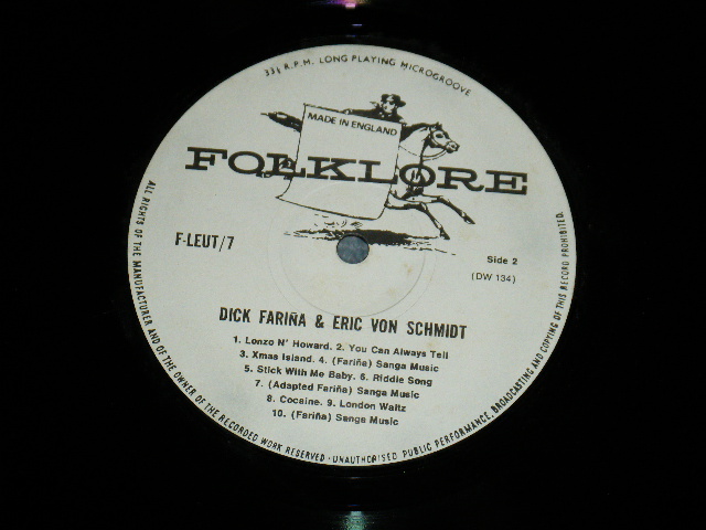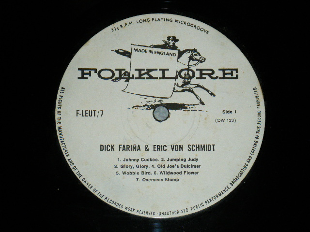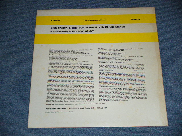 Dick Fariña & Eric Von Schmidt - Dick Fariña & Eric Von Schmidt (Ex++/Ex+++) / 1963 UK ENGLAND ORIGINAL "Limited Edition" 1st Press "MONO" Used LP[FOLKLORE F-LEUT/7]