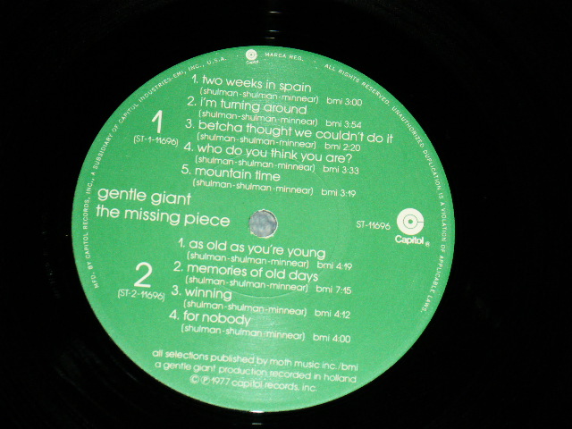 GENTLE GIANT - THE MISSING PIECE (With CUSTOM INNER) (Ex++/MINT-) / 1977 US AMERICA ORIGINAL Used LP[CAPITOL ST-11696]