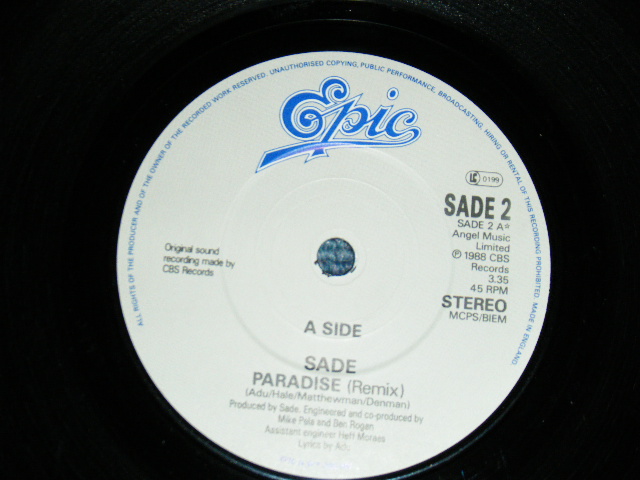 SADE - PARADISE A)Remix B) INSTRUMENTAL) (Ex+++/MINT-) / 1988 UK ENGLAND ORIGINAL "1st Press Label" Used 7"Single with PICTURE SLEEVE [EPIC SADE1 SADE-2]