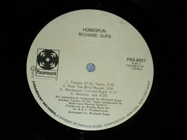 RICHARD SUPA - HOMESPUN (Ex++/Ex++) / 1972 US AMERICA ORIGINAL Used LP[PARAMOUNT PAS-6027]