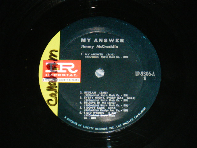 ARTIST : | JIMMY McCRACKLIN | TITLE : | MY ANSWER |