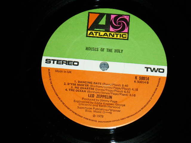 LED ZEPPELIN - HOUSES OF THE HOLY (Matrix #A)K-50014-A2 R 1 D STERLING RL B)K-50014-B2 2 S STERLING RL) (Ex+/Ex++ A-2,3:Ex-) / 1973 UK ENGLAND ORIGINAL 1st Press Label Used LP [ATLANTIC K-50014]