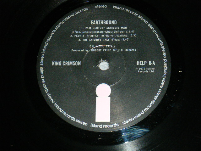 KING CRIMSON - EARTHBOUND (NO BLACK INNER SLEEVE) (Matrix #A) HELP-6 A-1U 3 M B) HELP-6 B-1U 1 M) (Ex++/Ec+++ Looks:Ex+) / 1972 UK ENGLAND ORIGINAL 1st PRESS "BLACK with PINK 'i' LABEL" LP [ISLAND HELP-6]