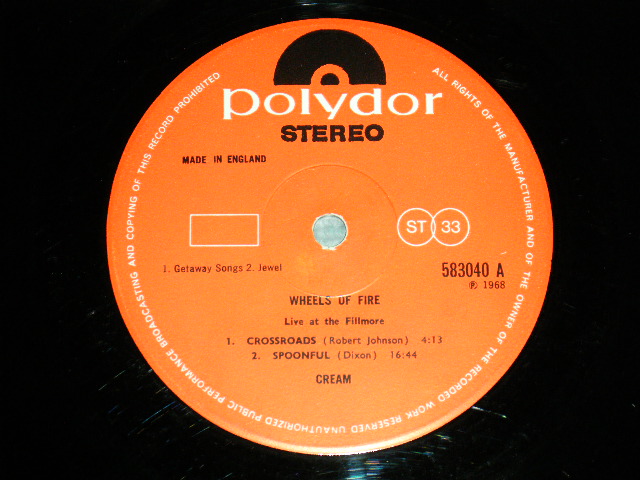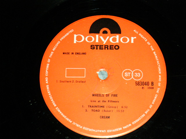 CREAM - WHEELS OF FIRE: LIVE AT THE FILLMORE (Matrix #A)583040 A//1 ▽420 1 1 5 B)583040 B//1 ▽420 1 1 4) (Ex++/Ex+ Looks:Ex+++) / 1968 UK ENGLAND ORIGINAL 1st PRESS COATING / BRIGHT SHINNING Jacket STEREO Used LP[POLYDOR 583 040 / 583040 STEREO]
