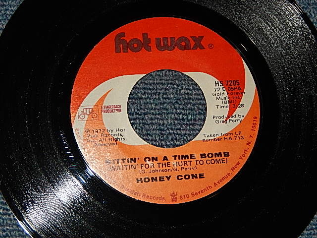 HONEY CONE - A)Sittin' On A Time Bomb (Waitin' For The Hurt To Come) B)It's Better To Have Loved And Lost (MINT-/MINT-) / 1972 US AMERICA ORIGINAL "1st PRESS Label" Used 7" Single [HOT WAX HS-7205]