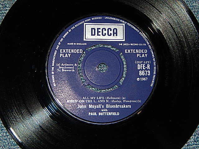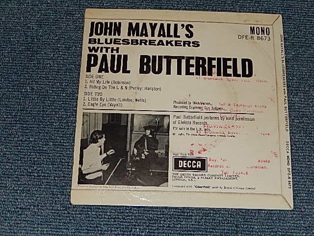 JOHN MAYALL's Bluesbreakers With Paul Butterfield - ALL MY LIFE (Ex++/Ex+++) / 1967 UK ENGLAND ORIGINAL Used 7" 45rpm EP[DEWCCA DFE-R 8673]