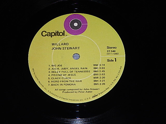 JOHN STEWART - WILLARD (With INSERTS) (Ex++/MINT- BB for PROMO) / 1970 US AMERICA ORIGINAL "PROMO HOLE" "LIME GREEN Label" Used LP [CAPITOL ST-540]