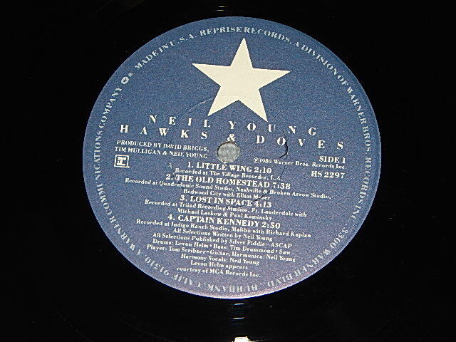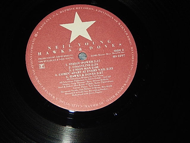 NEIL YOUNG - HAWKS & DOVES (with CUSTOM INNER) (Matrix #A)S HS-1-2297-E10 SJR CBS-NYC EDP B)S HS-2-2297-RE1 - E7 EDP SJR CBS, NYC) "SANTA MARIA Press in CA" (MINT-/MINT CUT OUT) / 1980 US AMERICA ORIGINAL "CUSTOM Label" Used LP[REPRISE HS 2297 / HS-2297]