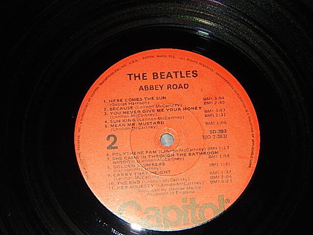 THE BEATLES - ABBEY ROAD (A)SO-1-383-H68 ML 2 MASTERED BY CAPITOL) * B)SO-2-383-F-72-3 MASTERED BY CAPITOL * "LOS ANGLES Press in CA" (Ex+++/MINT-)/ 1976 VersionUS AMERICA REISSUE "ORANGE Label" Used LP [CAPITOL SO 383 / SO-383]