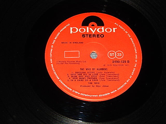 THE WHO - THE WHO BY NUMBERS (Numbered No.6935) (Matrix #A)2490129 A//1 ML 7 13 TML-M B)2490129 B//1 ML 1 4 TML-M) (Ex++/Ex+++ A-1:E) / 1975 UK ENGLAND ORIGINAL Use LP [POLYDOR 2490 129]