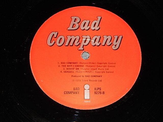 BAD COMPANY - BAD COMPANY (Matrix #A) ILPS-9279-1U 2 GT B) ILPS-9279-1U 1 GT ) (MINT-/MINT-) / 1974 UK ENGLAND ORIGINAL "Early EMI Press" Used LP [ISLAND ILPS-9279]