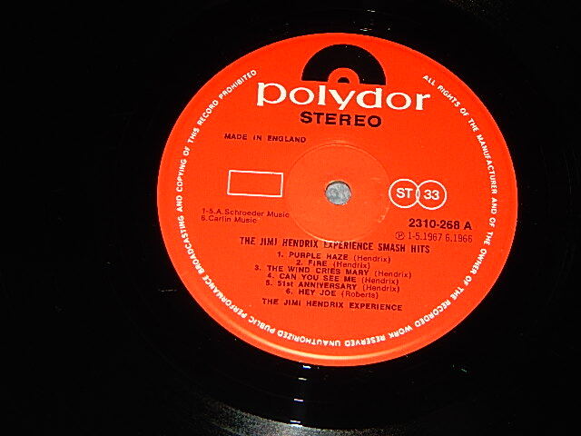JIMI HENDRIX - SMASH HITS (Ex+++/MINT-) / 1973 UK ENGLAND REISSUE Used LP[POLYDOR 2310 268 SUPER]