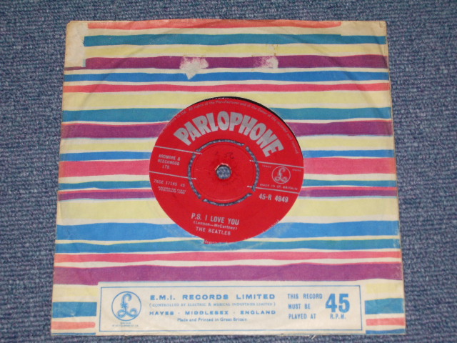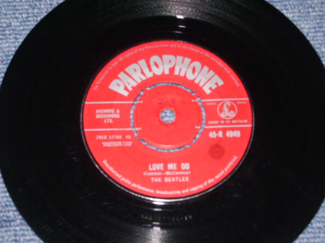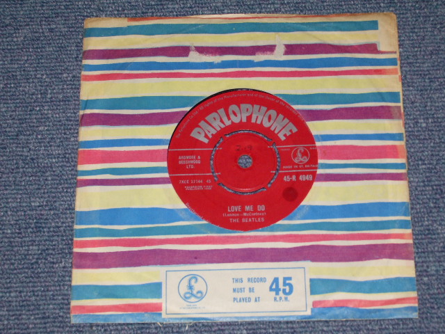 THE BEATLES - A) LOVE ME DO B) P.S.I LOVE YOU(Mtrix # \A) 7XCE 17144-1N MP ZT 1 1 RR B)7XCE 17145-1N MP ZT 1 RG) (Ex+ Looks:Ex/Ex+ Looks:Ex) / OCT 5 1962 UK ENGLAND Original 1st Press Press RED Label NON Credit 'SOLD in UK' Used 7" Single[PARLOPHONE 45-R4949]