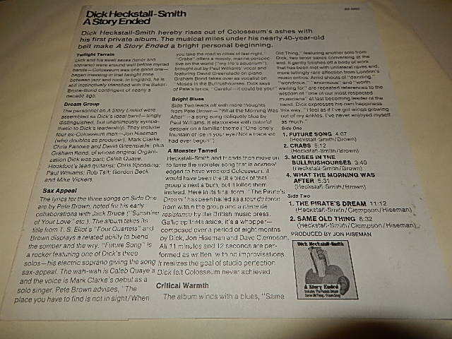 Dick Heckstall-Smith - A Story Ended (With INSERTS) (Ex++/Ex+++ CUT OUT, EDSP) / 1972 US AMERICA ORIGINBAL "GREEN with 'WB' Label" Used LP