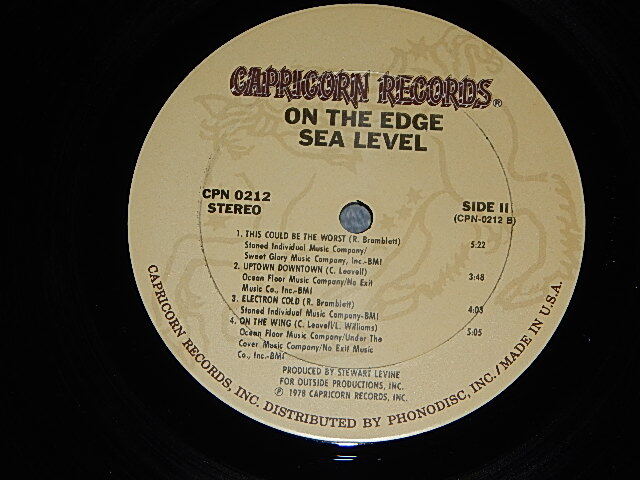 SEA LEVEL (CHUCK LEAVELL of ALLMAN BROS) - ON THE EDGE (Ex+++/MINT- STOFC) / 1978 US AMERICA ORIGINAL Used LP [CAPRICORNE CP-0212]