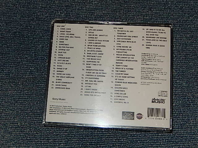 Tracklist| | | 1-1 | | Louie, Louie | 2:45 | | 1-2 | | Night Train | 2:57 | | 1-3 | | Louie - Go Home | 2:45 | | 1-4 | | Have Love, Will Travel | 2:33 | | 1-5 | | Over You | 2:16 | | 1-6 | | Swim | 1:56 | | 1-7 | | Sometimes | 2:30 | | 1-8 | | Oo Poo Pah Doo | 2:28 | | 1-9 | | Steppin' Out | 2:13 | | 1-10 | | Blue Fox | 2:34 | | 1-11 | | SS396 | 2:31 | | 1-12 | | Corvair Baby | 2:12 | | 1-13 | | Just Like Me | 2:22 | | 1-14 | | B.F.D.R.F. Blues | 5:06 | | 1-15 | | Kicks | 2:36 | | 1-16 | | Shake It Up | 4:04 | | 1-17 | | Hungry | 2:57 | | 1-18 | | There She Goes | 1:45 | | 1-19 | | The Great Airplane Strike | 2:58 | | 1-20 | | In My Community | 2:07 | | 1-21 | | Good Thing | 3:02 | | 1-22 | | Undecided Man | 1:48 | | 2-1 | | Ups And Downs | 2:56 | | 2-2 | | Leslie | 2:21 | | 2-3 | | Him Or Me - What's It Gonna Be? | 2:41 | | 2-4 | | Legend Of Paul Revere | 3:06 | | 2-5 | | I Had A Dream | 2:20 | | 2-6 | | Upon Your Leaving | 3:12 | | 2-7 | | Peace Of Mind | 2:27 | | 2-8 | | Do Unto Others | 2:14 | | 2-9 | | Rain, Sleet, Snow | 2:51 | | 2-10 | | Brotherly Love (Adaptation Of Greensleeves) | 2:08 | | 2-11 | | Too Much Talk | 2:15 | | 2-12 | | Happening '68 | 1:46 | | 2-13 | | Don't Take It So Hard | 2:29 | | 2-14 | | Observation From Flight 285 (In 3/4 Time) | 2:54 | | 2-15 | | Cinderella Sunshine | 2:01 | | 2-16 | | It's Happening | 2:43 | | 2-17 | | Mr. Sun, Mr. Moon | 2:35 | | 2-18 | | Without You | 4:00 | | 2-19 | | Let Me | 2:31 | | 2-20 | | I Don't Know | 3:38 | | 2-21 | | Judge GTO Breakway (Pontiac Promo Single) | 2:45 | | 2-22 | | Song For Swingy (Mattel Single) | 2:38 | | 3-1 | | We Gotta All Get Together | 2:58 | | 3-2 | | Frankfort Side Street | 3:02 | | 3-3 | | Just Seventeen | 3:49 | | 3-4 | | Sorceress With Blue Eyes | 4:16 | | 3-5 | | Gone Movin'On | 2:39 | | 3-6 | | Interlude (To Be Forgotten) | 2:33 | | 3-7 | | Indian Reservation (The Lament Of The Cherokee Reservation Indian) | 2:53 | | 3-8 | | Terry's Tune | 3:23 | | 3-9 | | Birds Of A Feather | 2:42 | | 3-10 | | The Turkey | 4:05 | | 3-11 | | Country Wine | 2:30 | | 3-12 | | It's So Hard Getting Up Today | 2:42 | | 3-13 | | Powder Blue Mercedes Queen | 3:05 | | 3-14 | | Golden Girls Sometimes | 2:39 | | 3-15 | | Song Seller | 3:34 | | 3-16 | | A Simple Song | 3:03 | | 3-17 | | Love Music | 3:41 | | 3-18 | | Goodbye, No. 9 | 2:56 | | 3-19 | | (If I Had It To Do All Over Again, I'd Do It) All Over You | 2:42 | | 3-20 | | Seaboard Line Boogie | 3:08 | | 3-21 | | Your Love (Is The Only Love) | 3:07 | | 3-22 | | Gonna Have A Good Time | 2:58 |