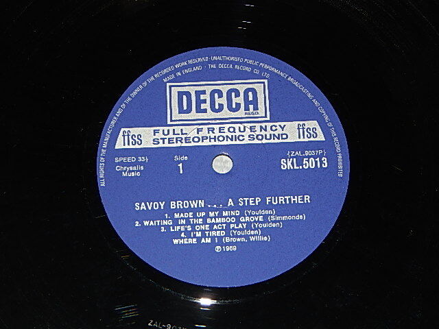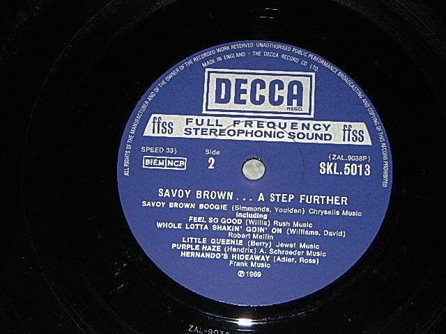 SAVOY BROWN - A STEP FURTHER (Matrix # A) ZAL-9037-P-1W 1 BD B) ZAL-9038-P-1WV1 K) (MINT-/MINT-) / 1969 UK ENGLAND ORIGINAL Used LP [DECCA SKL.5013 / SKL-5013]