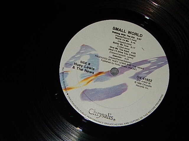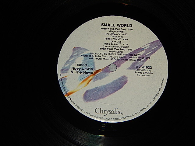 HUEY LEWIS & THE NEWS - SMALL WORLD (with CUSTOM INNER)(MINT-/MINT) / 1988 US AMERICA ORIGINAL Used LP[CHRYSALISOV-41622]