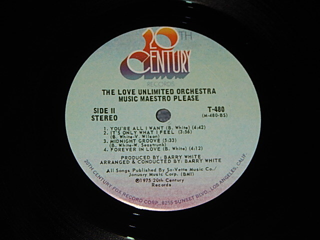 LOVE UNLIMITED ORCHESTRA (BARRY WHITE) - MUSIC MAESTRO PLEASE (Ex+/Ex+++ CUT OUT) / 1975 US AMERICA ORIGINAL Used LP[20TH CENTURY T-480]