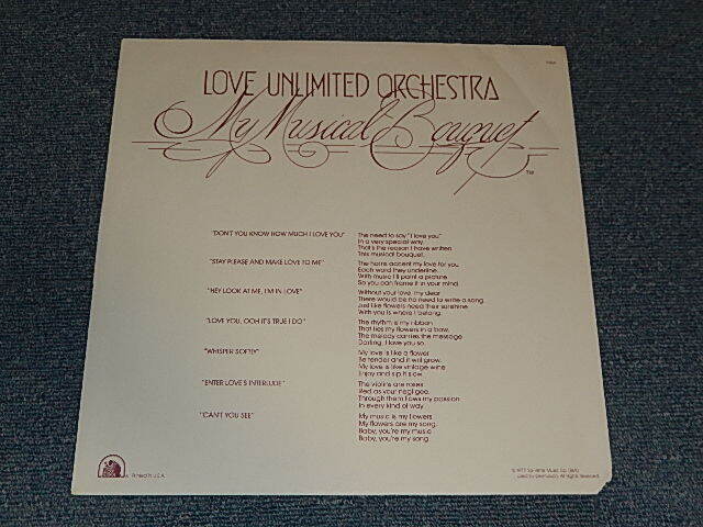 ARTIST : | LOVE UNLIMITED ORCHESTRA (BARRY WHITE) | TITLE : | MY MUSICAL BOUQUET |