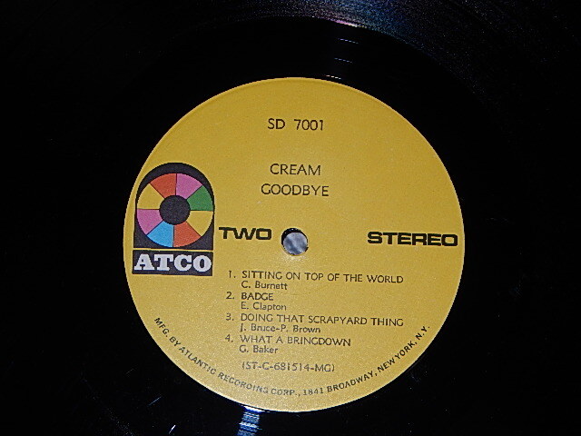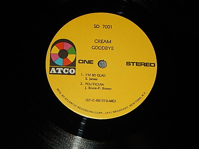 CREAM - GOODBYE CREAM (Matrix #A)ST-C-681753-E-1 12 MG/LU B)ST-C-681514-E-1 MG LU) "MGM Press in NJ" (VG++, Ex, Ex++/Ex+ Looks:Ex+++ BB, EDSP) / 1969 US AMERICA ORIGINAL 1st Press "YELLOW with 1841 BROADWAY Label" Used LP[ATCO SD 7001 / SD-7001]