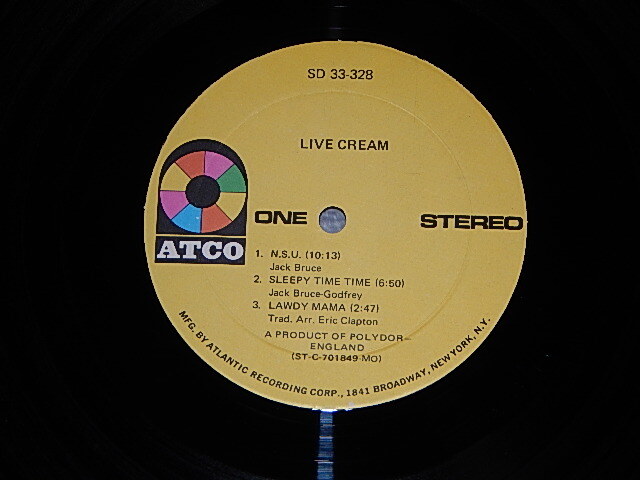 CREAM - LIVERCREAM (A)ST.C-701847-AA MO (MR) Σ ⌐ AT △14617 B)C-701850-AA-MO(MR) T △14617-X Σ ⌐ AT)"MO/MONARCH Press in CA" (Ex++/MINT-) /1970 US AMERICA ORIGINAL 1st Press "YELLOW with 1841 BROADWAY Label" Used LP[ATCO SD33-328 / SD 33-328]